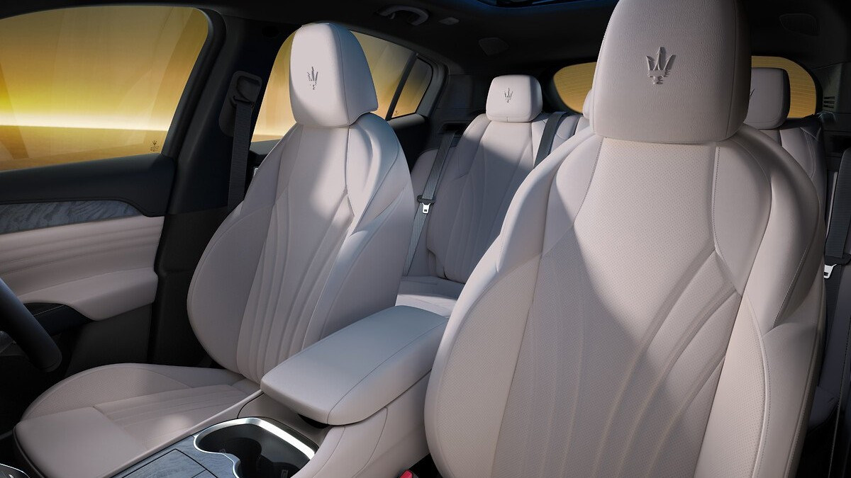 Listen over basisutstyr inkluderer panoramatak, forseter med varme, ventilasjon og elektrisk justering i 12 eller 14 retninger (for versjonen med lyst Ghiaccio-skinninteriør), oppvarmet ratt, elektrisk bakluke med kontaktløs aktivering og et 360-graders kamera.