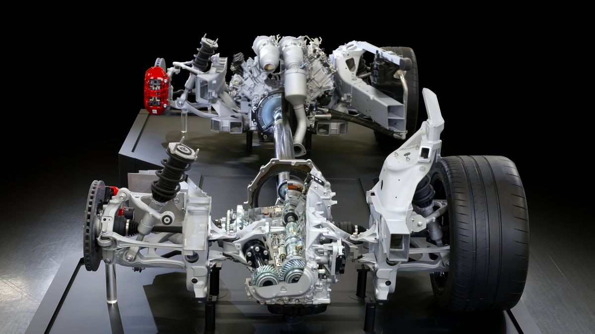 Superbilens for- og bakhjulsoppheng benytter doble ønskebeindesign med smidde kontrollarmer i aluminium. Prototyputvikling pågår fortsatt, med deltakelse fra styreleder Akio Toyoda selv og profesjonelle racerførere. Chassisinnstillingene finpusses på Fuji Speedway, Nürburgring og Shimoyama Proving Grounds. GR GT gjennomgår også en tilpasningssyklus for å møte kravene til daglig bruk. Det karbonkeramiske bremsesystemet er fra Brembo. Coupéen er utstyrt med Michelin Pilot Sport Cup 2-dekk, spesielt utviklet for GR GT, med dimensjoner 265/35 ZR20 foran og 325/30 ZR20 bak.