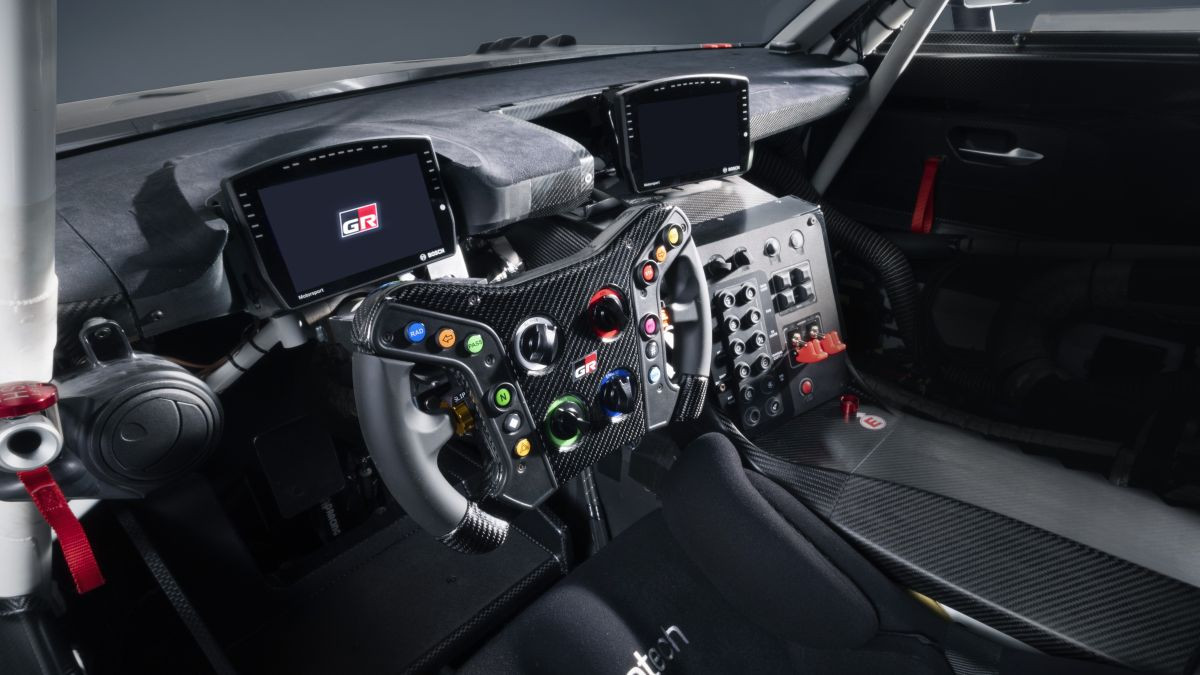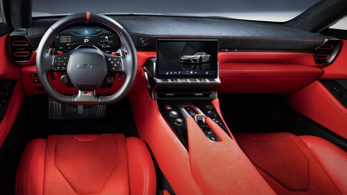 Det strengt toseters interiøret i Toyota GR GT coupé er bygget rundt et ekstremt lavt førersete, effektivt på nivå med bilens tyngdepunkt. Ifølge designerne oppnådde dette en enestående enhet mellom menneske og maskin, men det krevde også nøye vurdering av ergonomi og sikt. Utformingen av alle kontroller er optimalisert for brukervennlighet under racingforhold. Samtidig lover superbilens interiør å gi den nødvendige komforten for daglig bruk. Instrumentdisplaykonfigurasjonen sikrer utmerket lesbarhet. Et sentralt mediesystemnettbrett er montert, og under det er en rad med store klimaanleggsknapper og luftventiler. Ytterligere fysiske kontroller er plassert i den sentrale tunnelen.