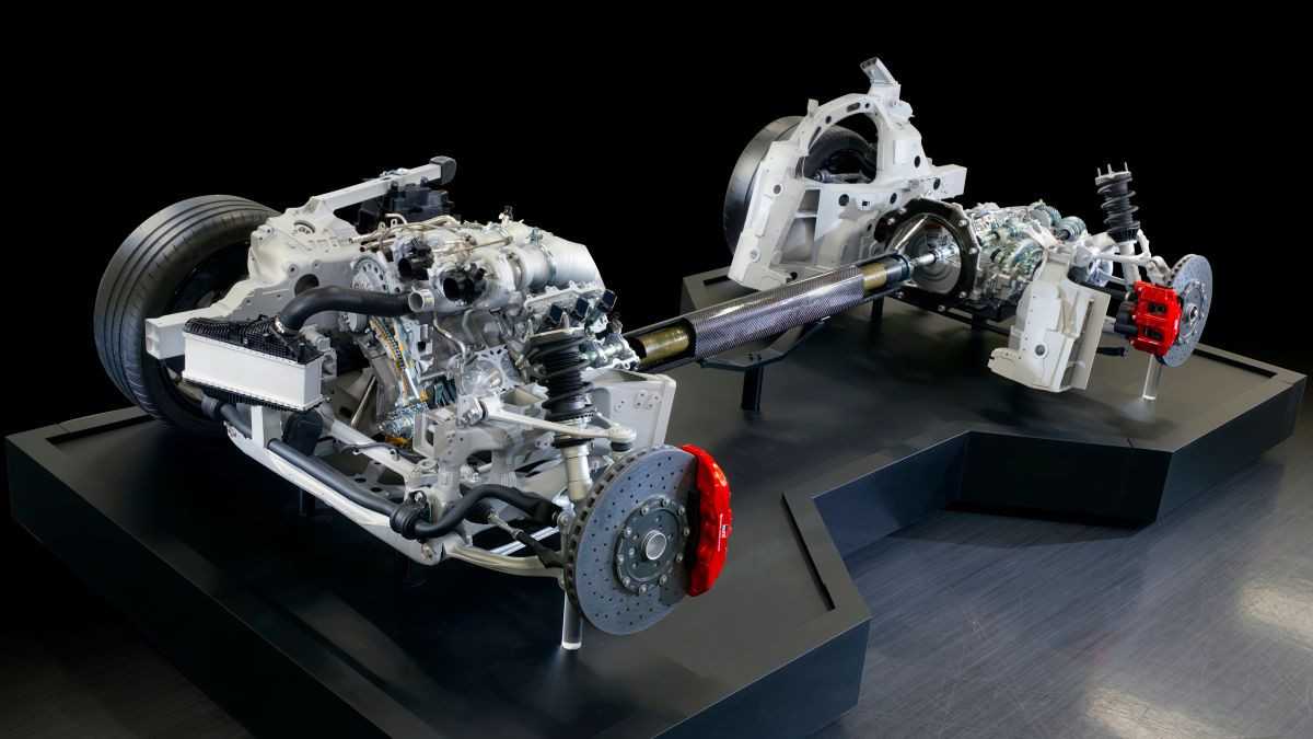Girkassen fortjener en detaljert analyse, ettersom GR GT er den første hybriden i Toyota Gazoo Racing (TGR)-serien. En karbonfiberaksel kobler motoren til bakakselen. Bak er det en enkelt enhet som huser en motorgenerator, en mekanisk limited slip clutch og en helt ny åttetrinns automatgirkasse. Sistnevnte bruker en våtclutch i stedet for en tradisjonell momentomformer, og en elektrisk motor montert ved inngangen til girkassen er designet for å kompensere for forsinkelser i responsen under akselerasjon og jevne ut fall i dreiemomentet under girskift. Ingeniørene lover at denne hybridenheten gir utmerket respons og tydelig tilbakemelding, og vil gi eksemplarisk trekkraftkontroll selv i automatisk modus.